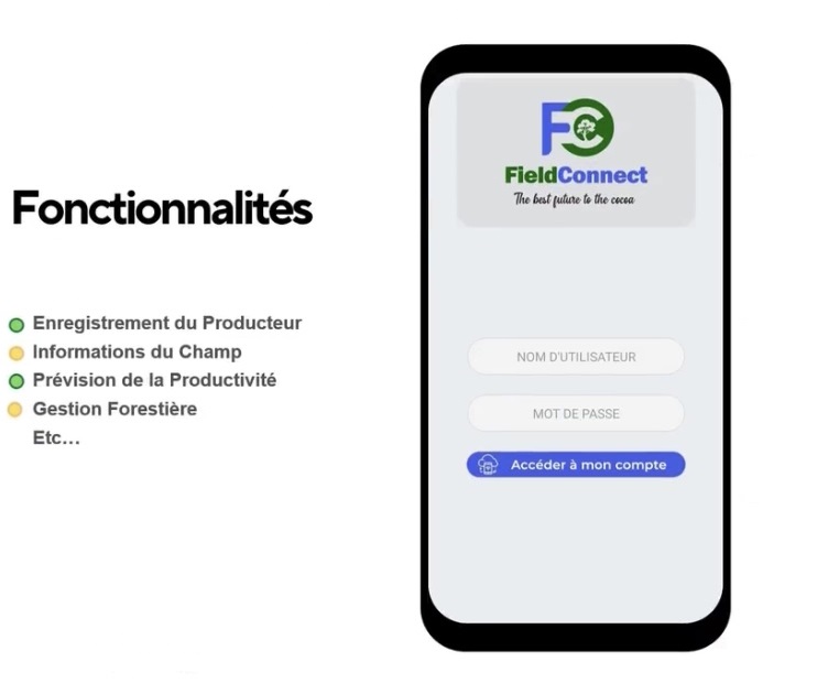 FieldConnect est un Système intelligent de gestion des données qui permet d'assurer la traçabilité agricole en visant un sourcing responsable. C'est une plateforme web et mobile intégré dans le Cloud destinée à la gestion de la chaîne de valeur agricole surtout du cacao et qui s'adapte aux autres spéculations telles que l'anacarde, le palmier à huile, l'hévéa, le coton, la mangue, le karité, la banane.